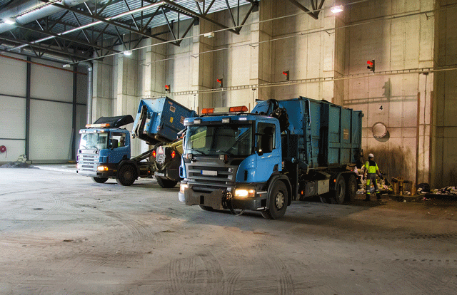 After garbage trucks collect trash from the curbside, they drive to a local transfer facility to dump the trash on the tipping floor. Vehicles, such as loaders or excavators, are used to place the trash into larger trucks to transport to landfills for final disposal. This process reduces costs associated with fuel and maintenance on local collection vehicles, allowing for a healthier fleet and lower resident costs.